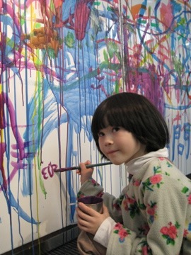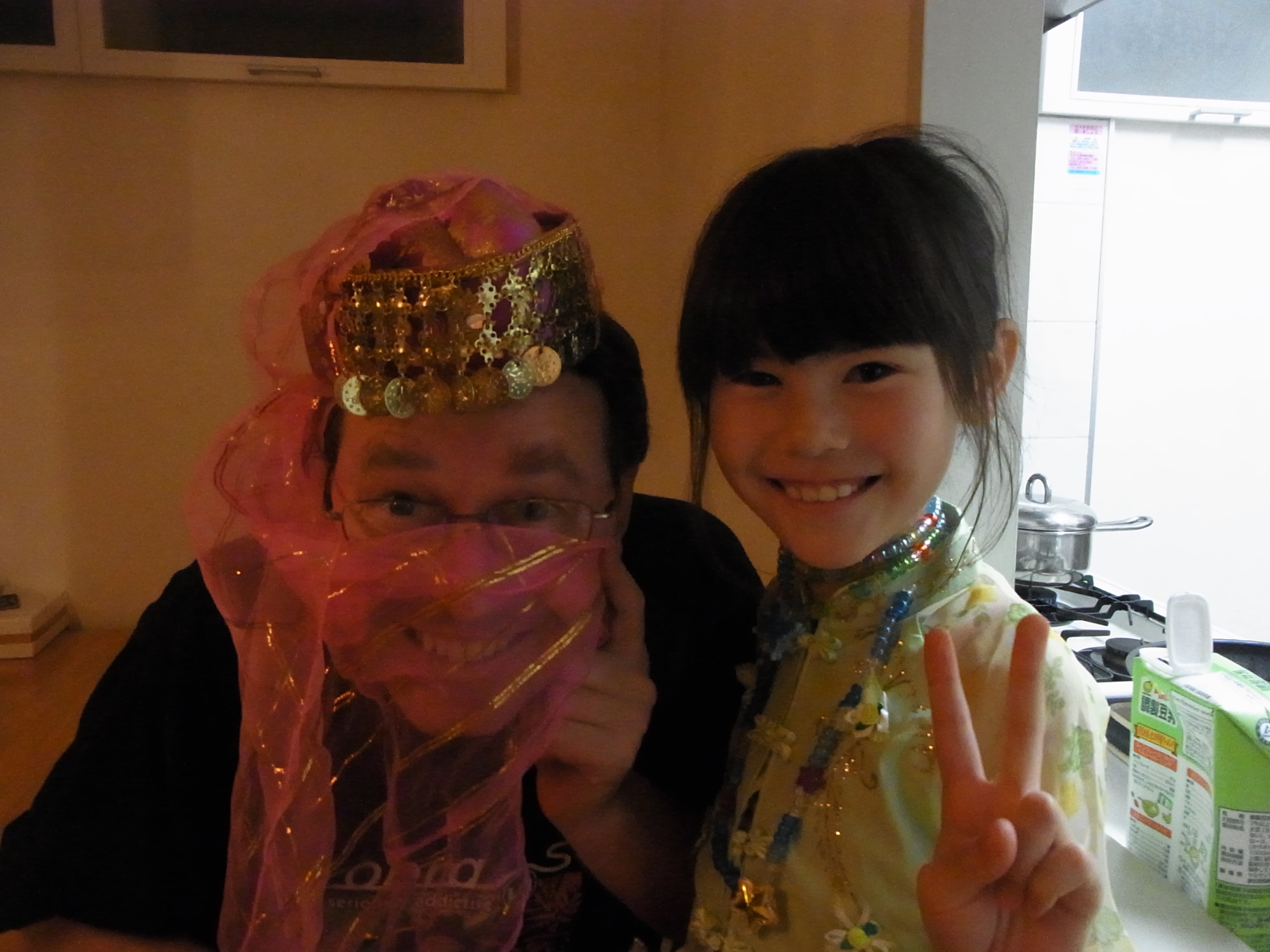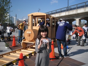 In the morning we went shopping and loaded up for lunch. We made a bento and after some dress-ups, we rode down to the Yamashita Park area. We picnicked on the huge pier, but one of those huge sea hawks swooped down and boldly snagged Dad’s chicken sandwich. We were both speechless… cheeky bugger! Following lunch we went to the Immigration Museum, enjoying a special drink and the view from the balcony. On our way home we dropped into the new park nearby the Red Brick Building and pasted a few colour squares onto these huge cardboard boats that will apparently be floated in the harbour one day soon.IMG_1487