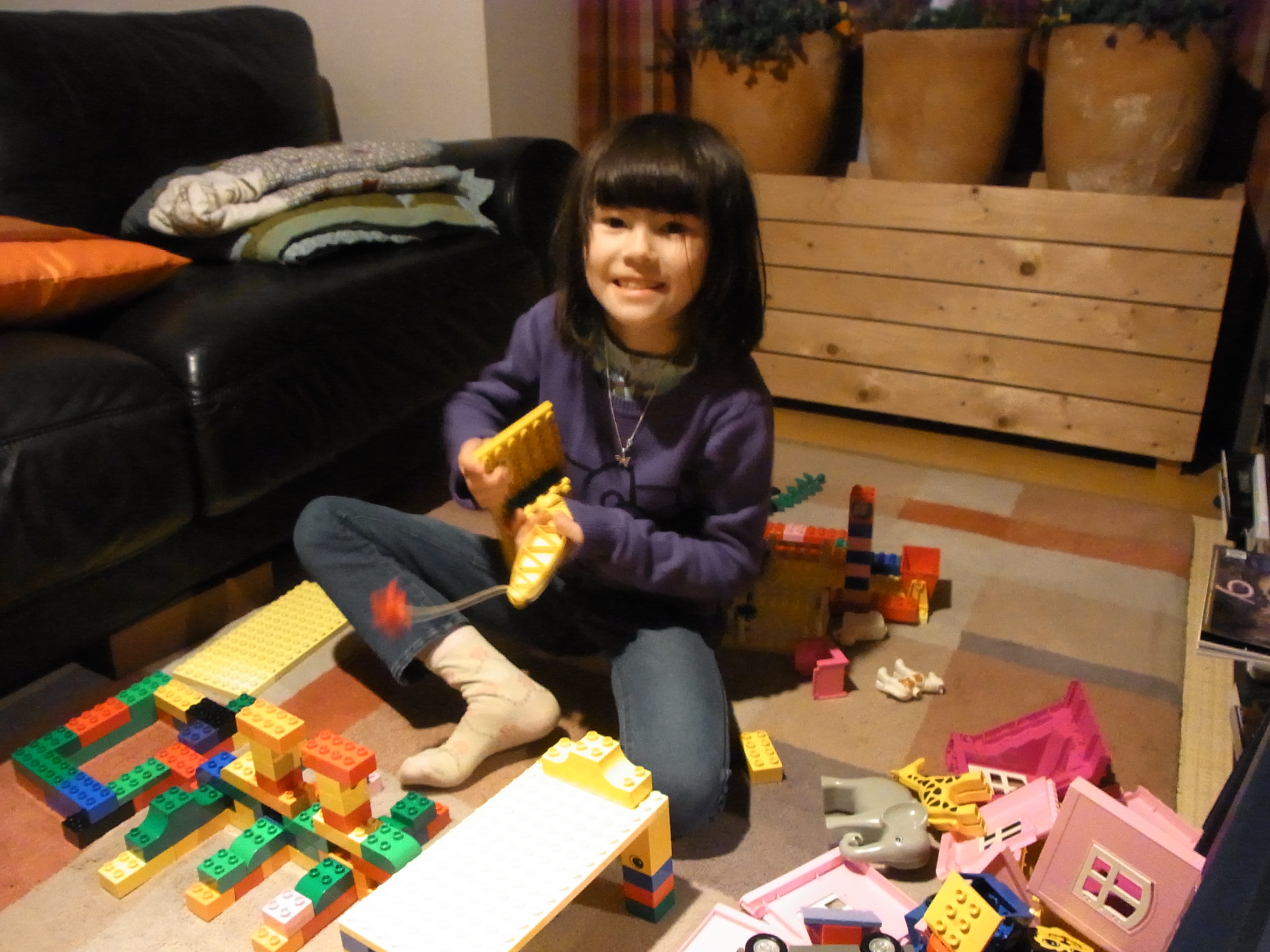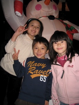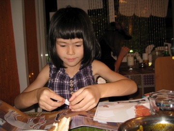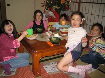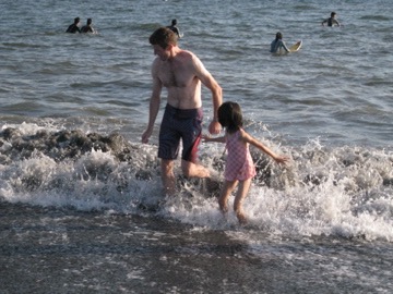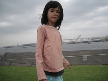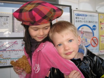 But after a while, there were just too many people due to the long weekend, so we jumped in a taxi and headed for Tsujido. My teaching partner David, his wife, Yoko, and son, Luka reside there. We met them on the beach and galloped like horses, screamed for more wizzy-dizzes, and buried you and your new friend, Toby (David’s nephew) in the sand. After a quick shower at David’s we all went to a nearby restaurant for dinner. Again you made me proud, eating all your curry rice and salad, and you were just lovely with the 5 younger children… a genuine onesan! After dinner you were reluctant to part with the handsome Toby, but we went back to Yokohama and played with the duplo lego before 3 stories and some shut-eye.