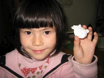 We were too early to check in, so we went into the village and noted a Visitors’ Center and not much more. We drove the 20 minutes to Chitose and had breaky at that Scottish restaurant, McDonald’s. Hokkaido was waking up, so it was time for us to check in. The kind people at the front desk informed us of an impending typhoon. Sure enough, it started raining, so within the hour we had extended our stay to 3 nights. Fortunately you loved the Visitors’ Center and all its touchy feely exhibits. I’m not sure we even had an umbrella, so no doubt we got drowned running to and from the car. After lunch, dad needed a nap, but you were keener on catching a bit of NHK’s kids’ programs. After an onsen, a grand meal and a kids’ craft program where you made a boomerang down in the lobby, our first day in Hokkaido drew to a close.