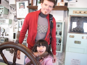 We dumped our bags and went out on the deck to wave goodbye to Niigata. The ferry needed to be explored as it was to be our home for the next 17 hours. There were restaurants, a movie theater, a crummy kids’ playroom (but you were happy enough to make do) and a museum type area. Fortunately we spent a lot of time running around on the deck feeling the wind in our faces, singing songs as loud as we could and shouting happily at the sea. Later the ship’s stewards locked the outside doors.