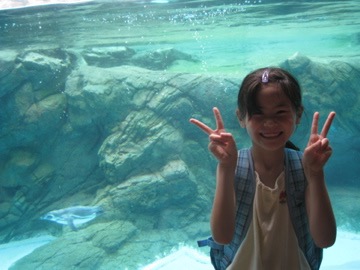 Today’s a public holiday for you, but Dad had school as usual. I didn’t mind as I had a spring in my step as I rode to school this morning. Thank you for sharing the weekend with me! It was just grand! Saturday, I picked you up at 10am and we went straight to Enoshima. We had a tasty lunch at a ritzy Italian restaurant and then we braved the crowds at the aquarium. You took a million photos on our digital camera of the many colourful fish, dolphins, seals, jellyfish & us! Your biggest smile was when I asked you if you wanted to climb up high on giant Dad’s shoulders for the dolphin show. What a show!IMG_1394