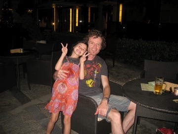 Hey Bella, how are you? Today is Dad & C’s third wedding anniversary; it’s also a public holiday in Hong Kong! Hooray!!! So last night we went to a French bar / restaurant to celebrate. Even though Dad is supposed to be having a month off alcohol, I cheated last night. I ended up having a glass of wine and two beers. We went into Mid Levels, Central. It’s a really cool area with loads of cafes, bars, and restaurants. For dinner I chose the pork sausages, and C had the duck. It was okay, but in a way we were a little disappointed. In Hong Kong it’s so easy to find ace dim sum at fantastic prices, but unlike Japan, they don’t seem to do fusion or anything European very well. Even so, it was lovely to be out with my dear C, especially as Dad could stay up past his bedtime (9pm) and not have to worry about being up at 5.40am!!! Happy holiday!