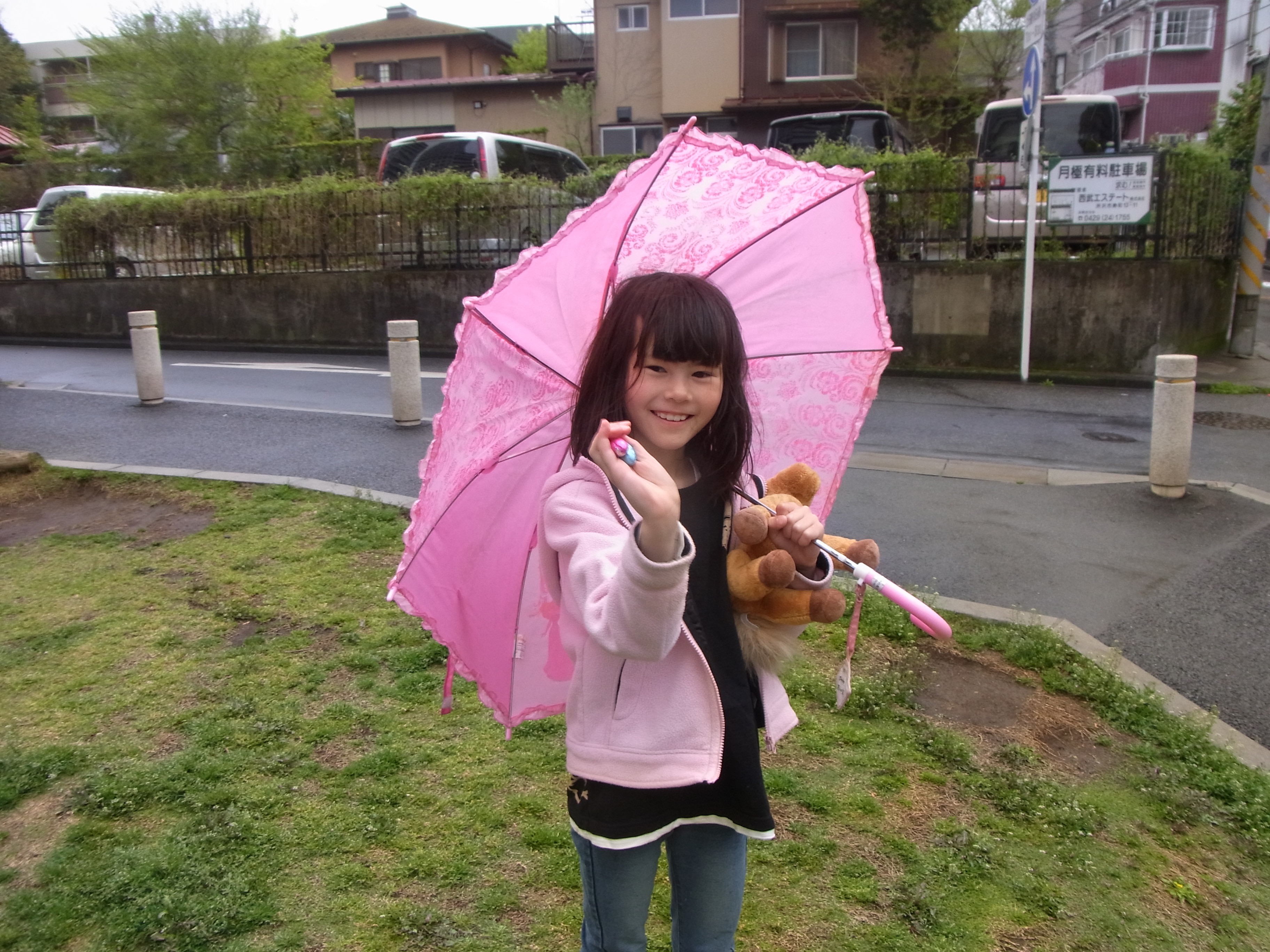 When you started at Katoh it took me a while to find a baby-sitter, so on rainy days we’d sometimes park the car at Pat’s, so we wouldn’t get too wet, but other days, I’d pack your snow gear (your red pants, gloves, beanie and of course your pink raincoat), especially if it was winter, and we’d ride home laughing and singing… “Rain, rain, go away, come back another day!” We would make up our own words and usually end by telling the rain to go to Australia because Nandee was always complaining how dry her garden was. Before Elaine introduced me to Toyomi (your baby-sitter), I made 350 bilingual leaflets advertising for a baby-sitter (paid) and delivered them door-to-door in our area. Nobody ever called to offer their assistance, so we went for a while without a sitter in the morning.